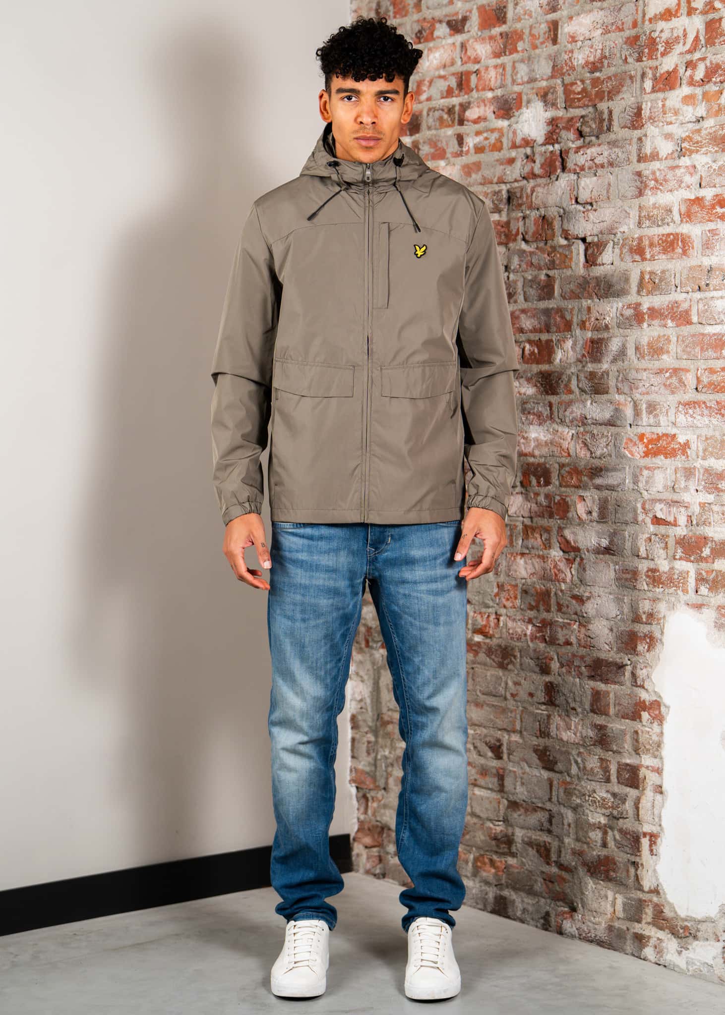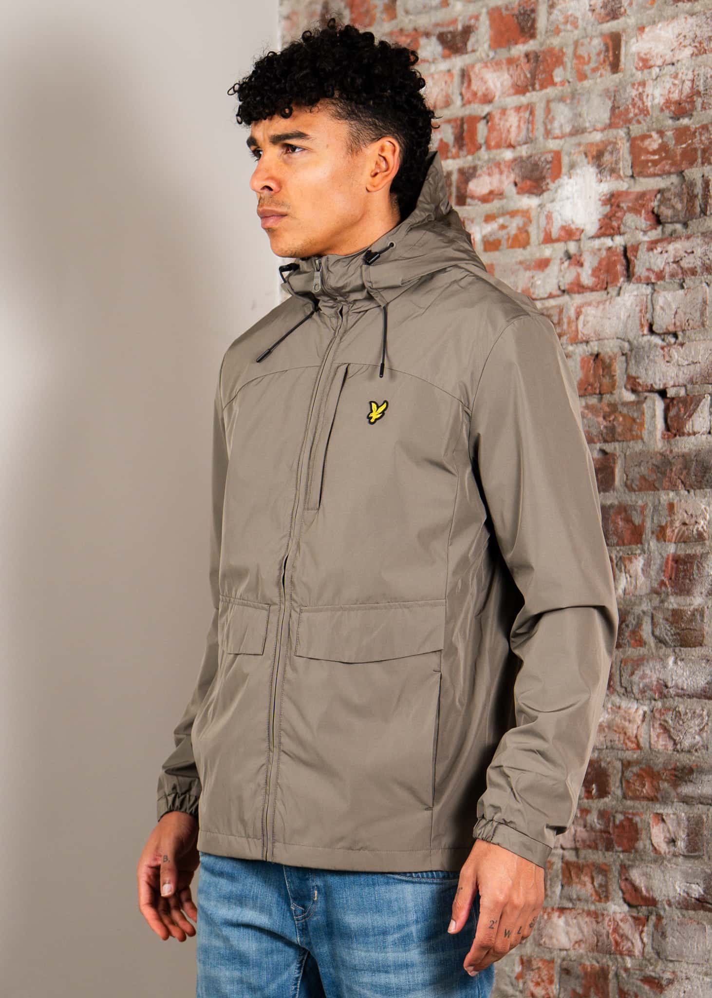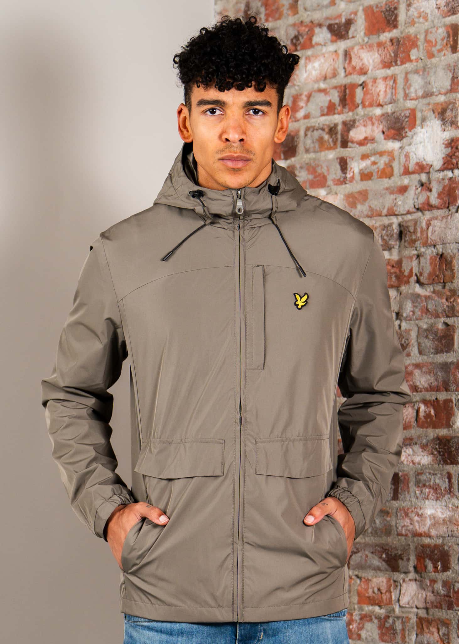 Lightweight hooded zip through jacket - khaki ash