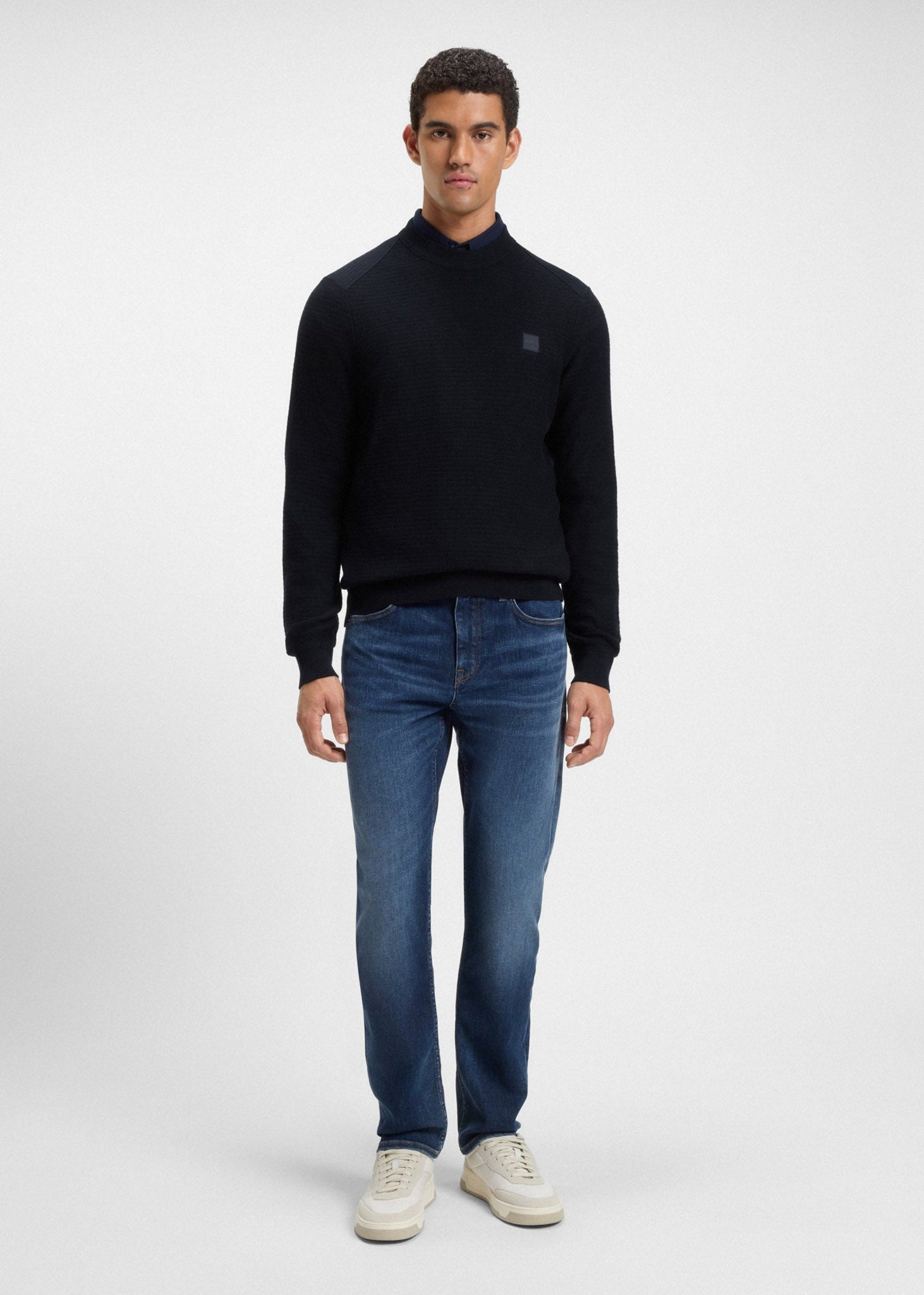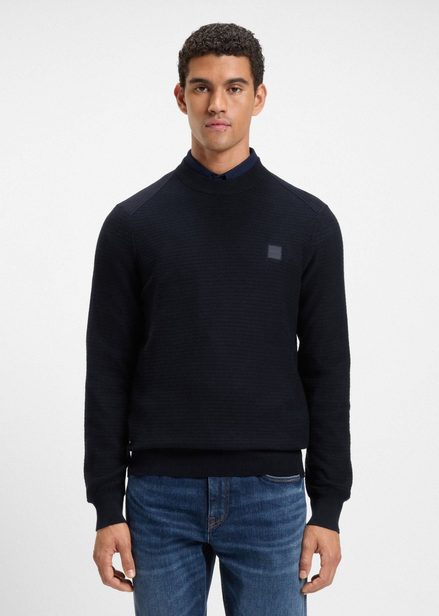 Deze Hugo Boss Trui combineert een rijke structuur met een zachte mix van katoen en kasjmier. Het regular fit design en de subtiele logopatch op de borst maken dit een tijdloze essential voor elke garderobe.