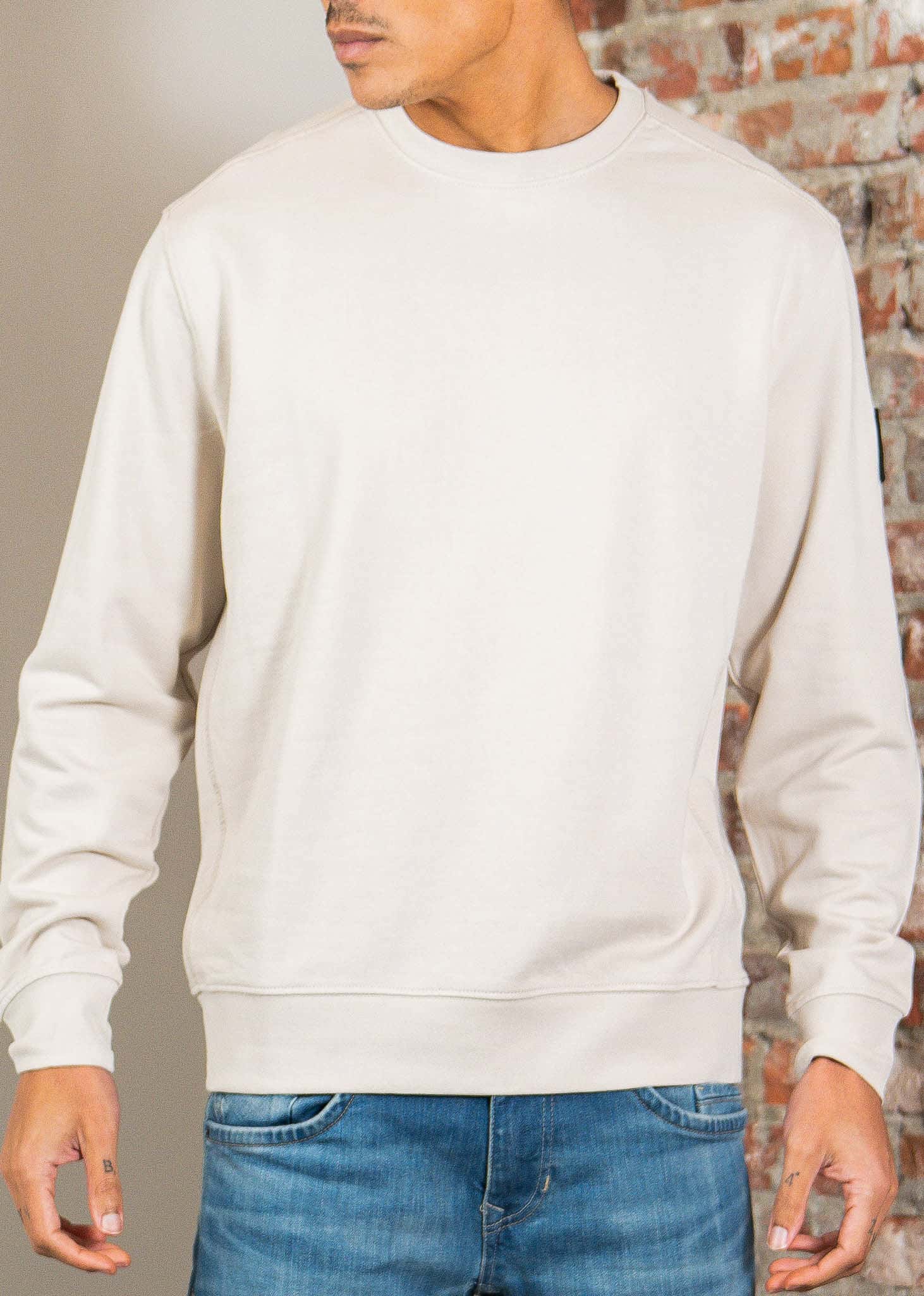 Stevige sweater van zware fleece met zachte binnenzijde. Strakke afwerking met technische details.